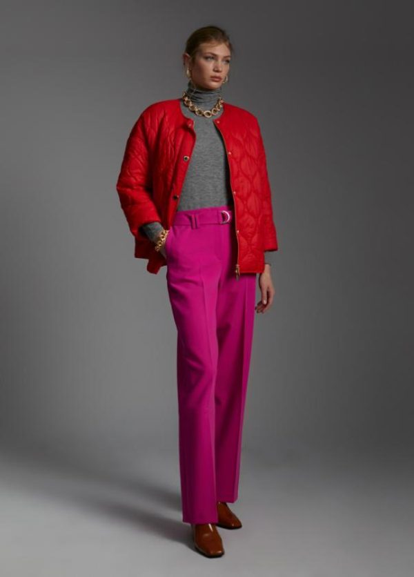 Chaqueta acolchada de cuello caja. Cierre con snaps metálicos y cremallera metálica con doble carro. Bolsillos laterales cerrados con cremallera. Aberturas en bajo lateral.