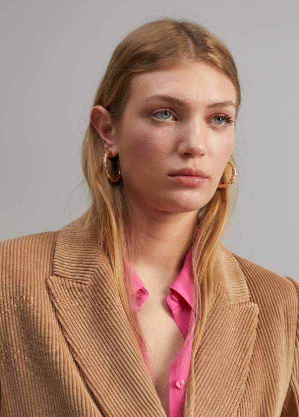 Americana oversize en efecto pana. Cuello solapa y manga larga. Bolsillos con tapete y cierre con botones en frontal.