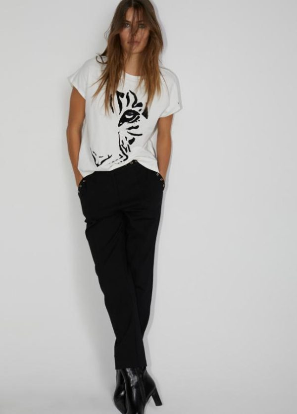 Camiseta de cuello caja y manga corta. Detalle de rostro tigre en frontal.
