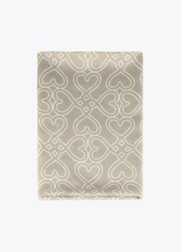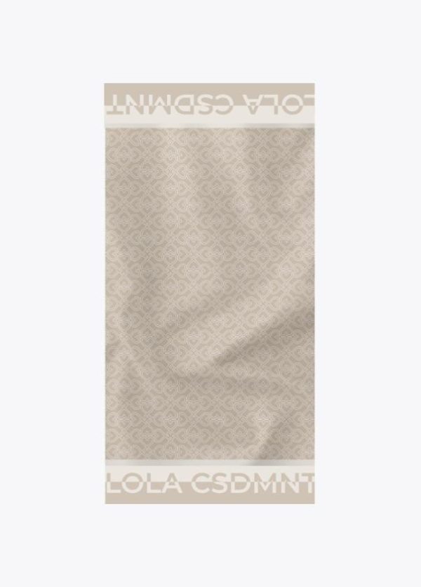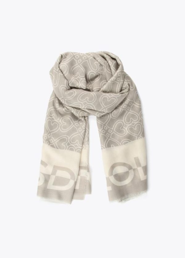 Fular en tonos crudos logotipado y con estampado corazones infinitos.