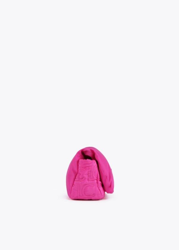 Bolso tipo bandolera acolchada de nylon con monograma bordado. Asa bandolera ajustable y extraíble y cierre en solapa con botones imantados.