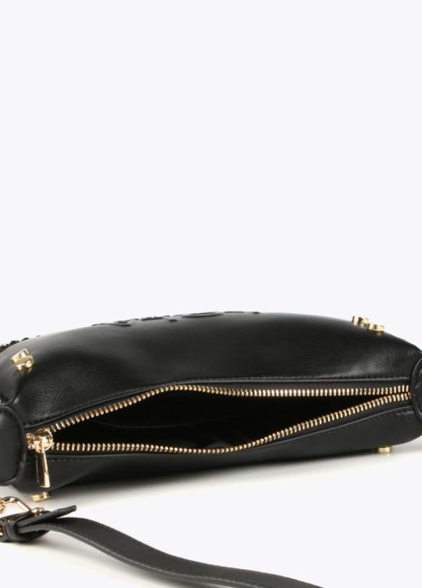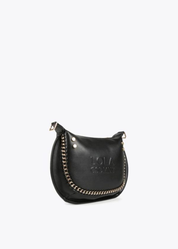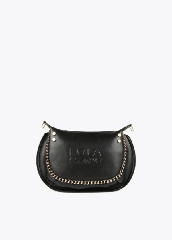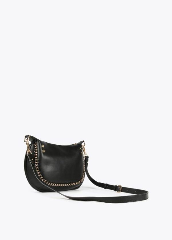 Bolso tipo bandolera en efecto piel con detalle cadena dorada. Logo grabado en parte frontal y cierre con cremallera.