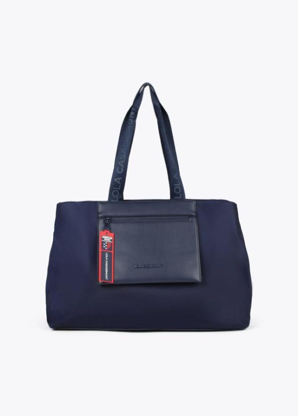 Bolso formato viaje de edición limitada en colaboración con American Magic. Asas de hombro. Cierre central mediante cremallera. Bolsillo interior y exterior con detalle de logo en contraste y pasa maletas trasero.