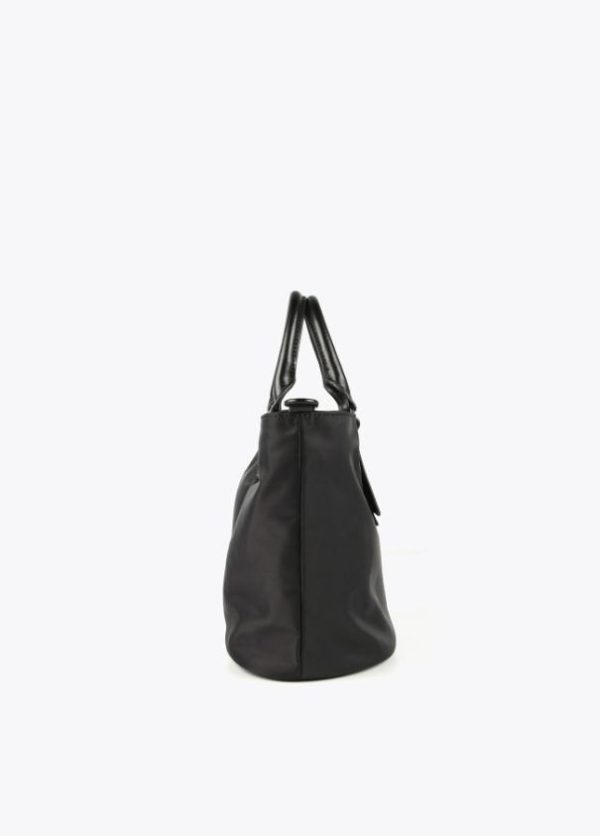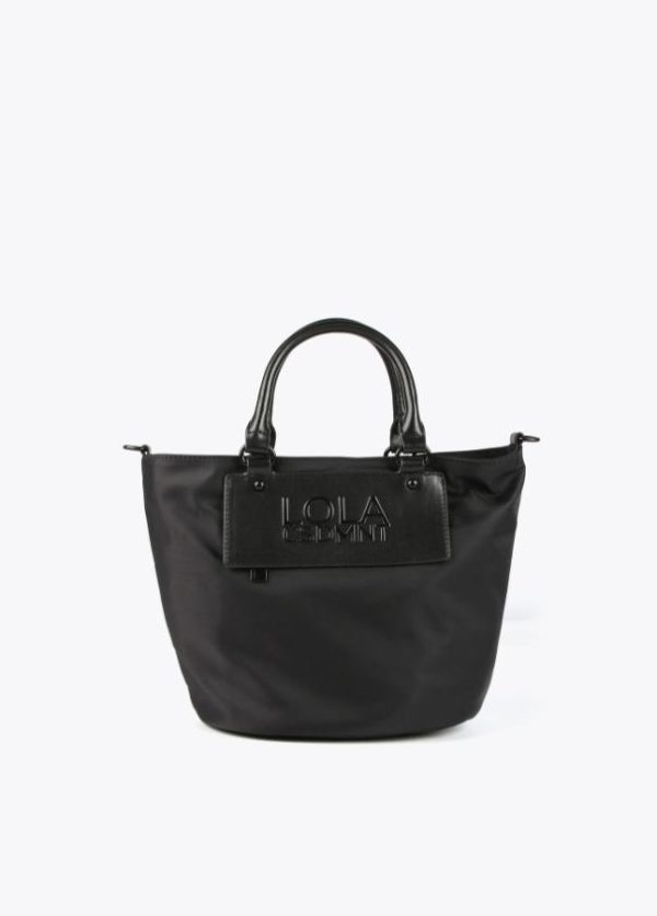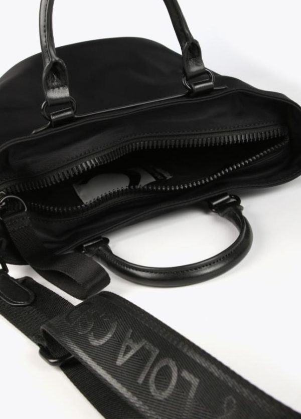 Bolso tipo bandolera en efecto piel y nylon combinada. Bolsillo en parte trasera y cierre central con cremallera. Asas de mano y asa bandolera logotipada.