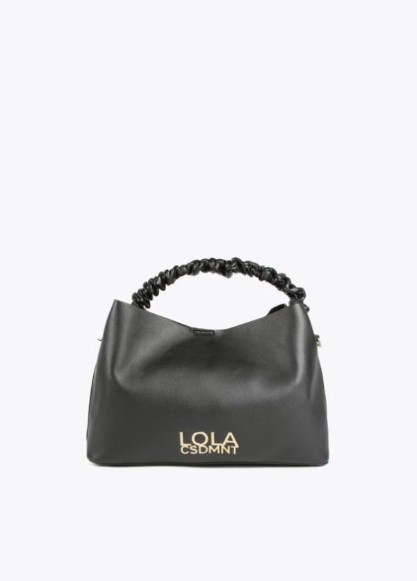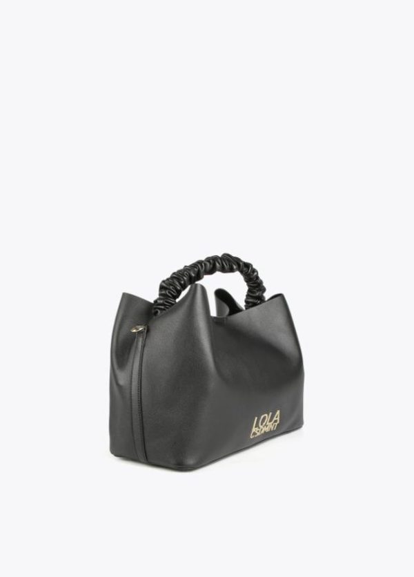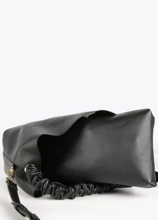 Bolso tipo shopper en efecto piel y asa de mano fruncida. Mega logo dorado en parte frontal. Asa bandolera ajustable y extraíble, bolsito neceser interior logotipado.