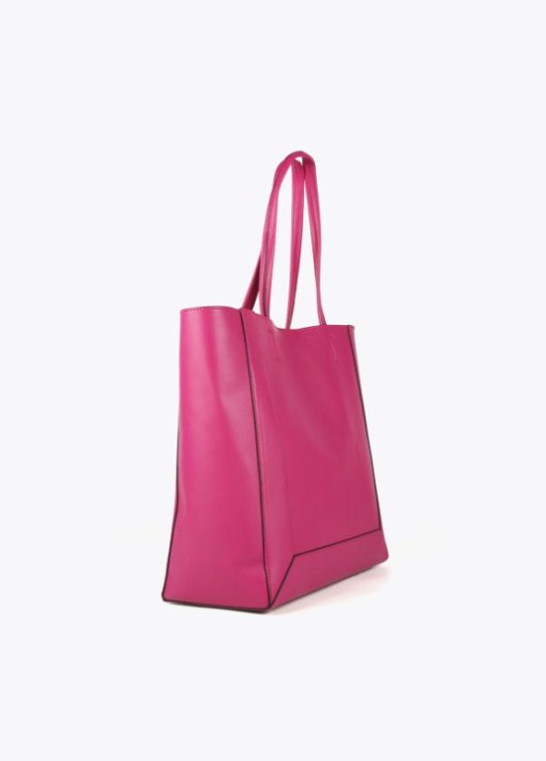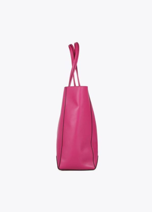 Bolso tipo shopper en efecto piel y logo dorado en parte frontal. Asas de hombro, cierre con lengüeta y botón imantado y bolsito neceser interior con cremallera.