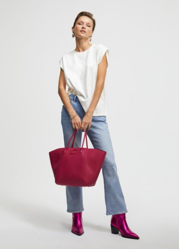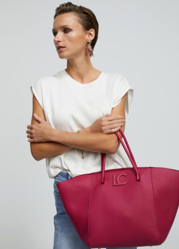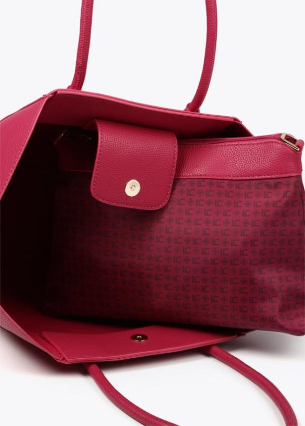 Bolso tipo shopper en efecto piel grabada con logo lacado en parte frontal. Asas de hombro y asa bandolera extraíble. Detalle bolsito neceser interior con cierre de cremallera.