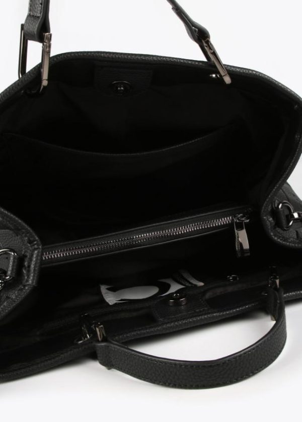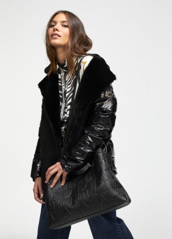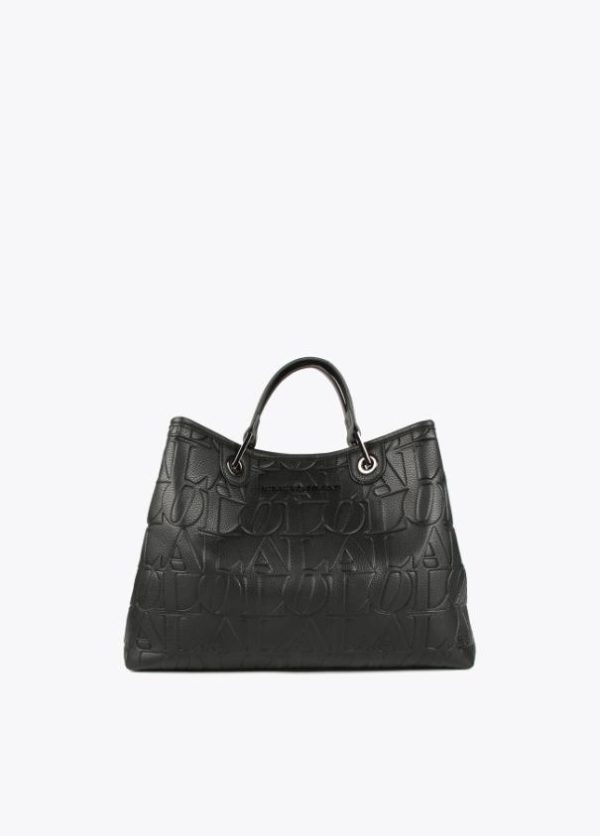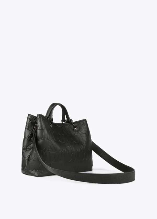 Bolso tipo shopper grabado en efecto piel y logo en parte frontal. Asas de mano y asa bandolera ajustable y extraíble. Cierre con botón imantado en lengüeta.