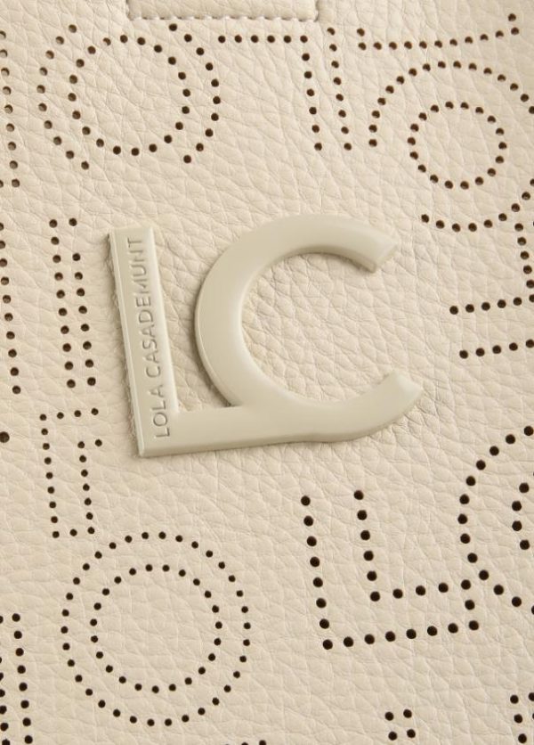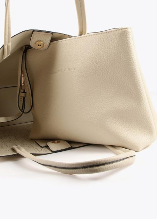 Bolso tipo shopper en efecto piel troquelado y logo lacado en parte frontal. Asas de hombro, cierre con botón imantado en lengüeta y bolsito neceser interior con cierre de cremallera.