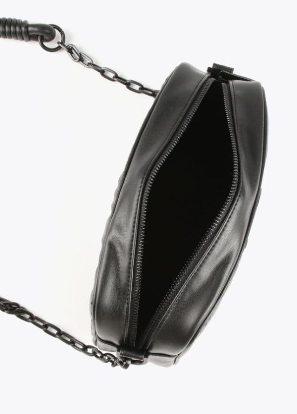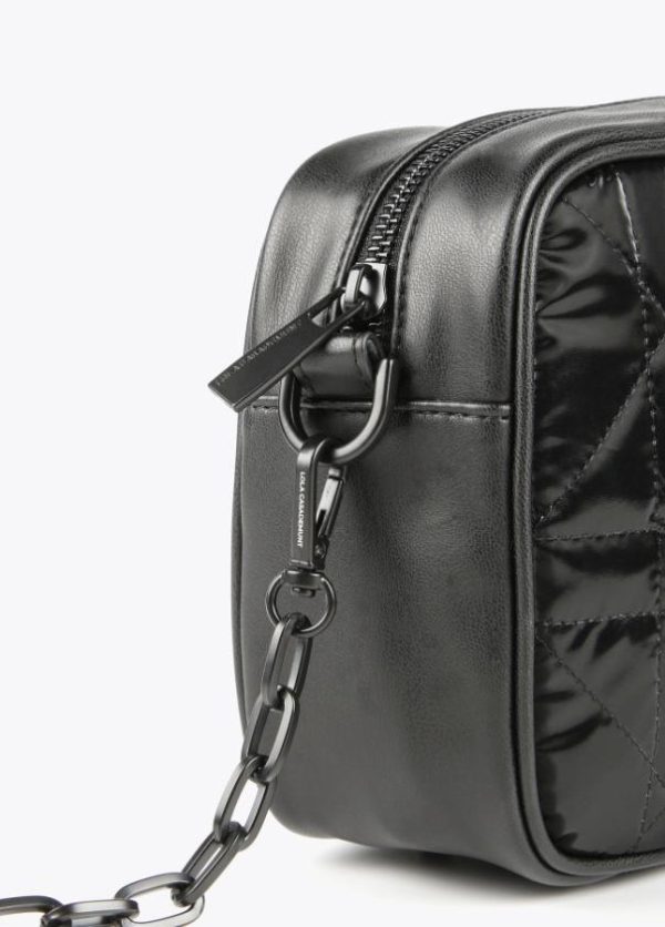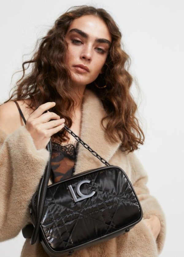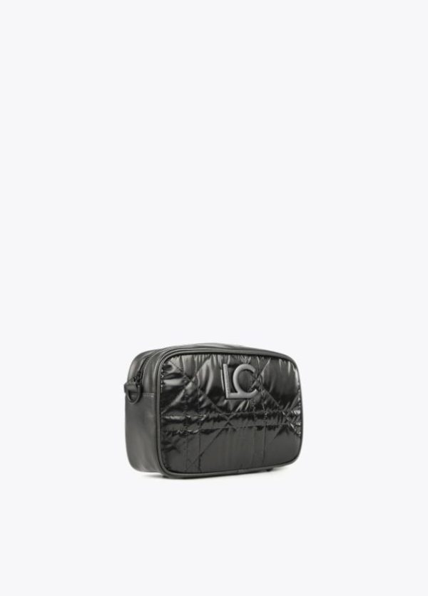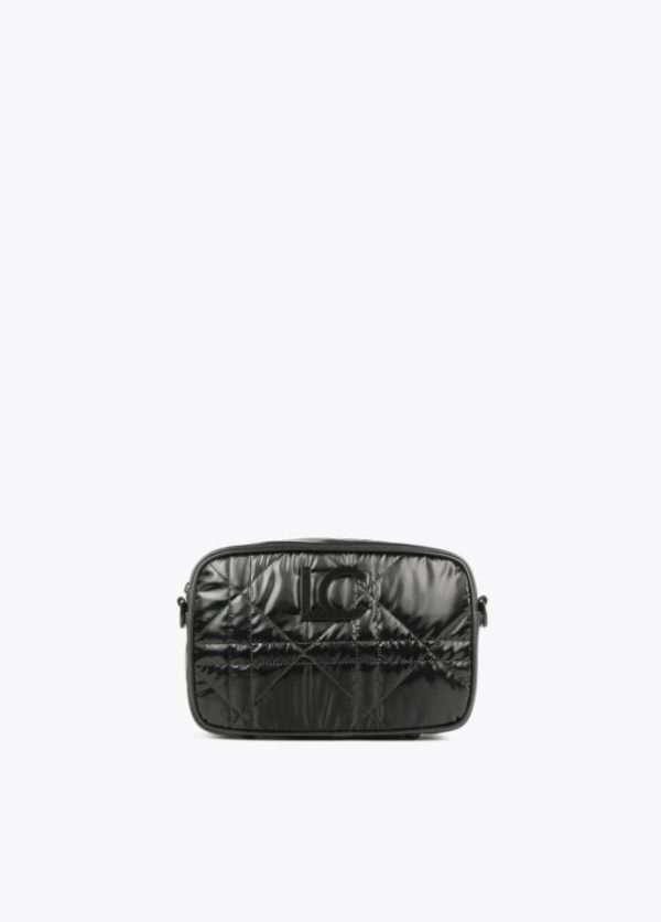 Bolso bandolera acolchada de nylon con logo en parte frontal. Cierre de cremallera y asa bandolera extraíble.