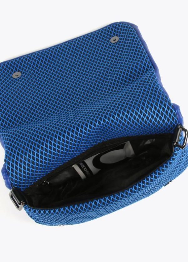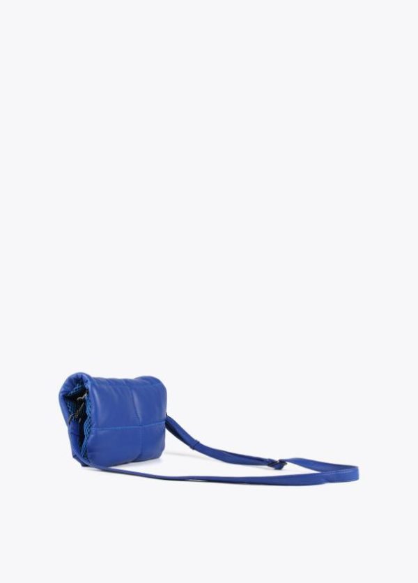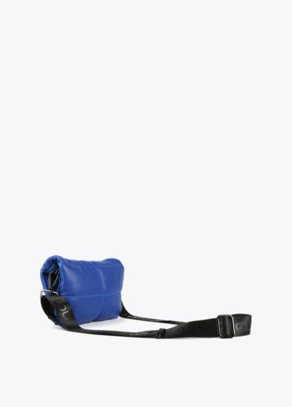 Bolso tipo bandolera acolchada con logo en parte frontal. Cierre con botones imantados en solapa y asa bandolera logotipada, ajustable y extraíble.