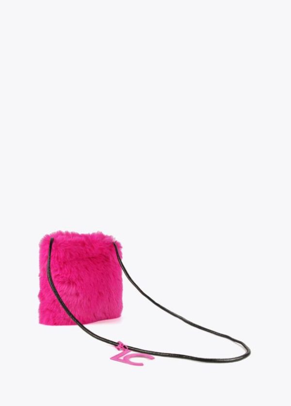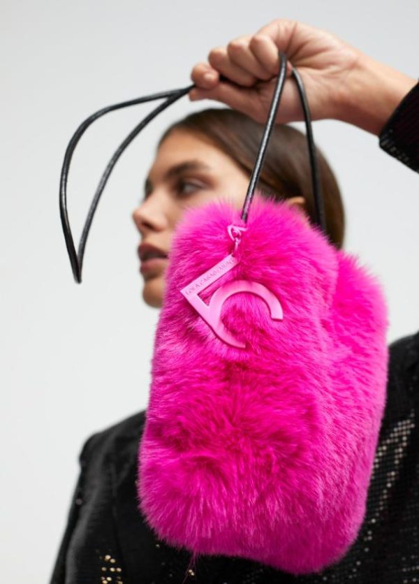 Bolso tipo bandolera efecto pelo color con cierre invisible imantado. Asa bandolera de cordón con detalle logo.