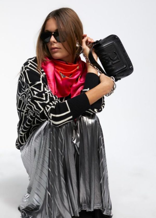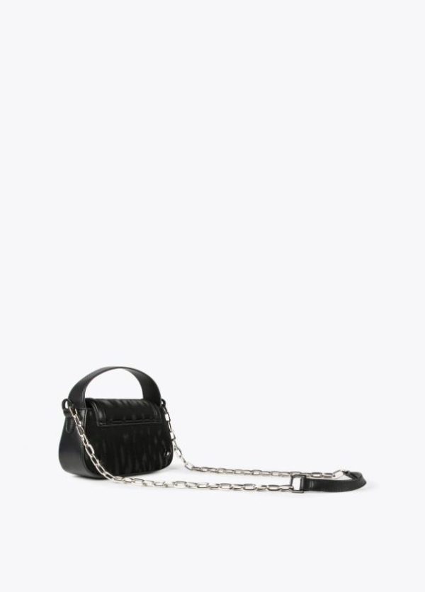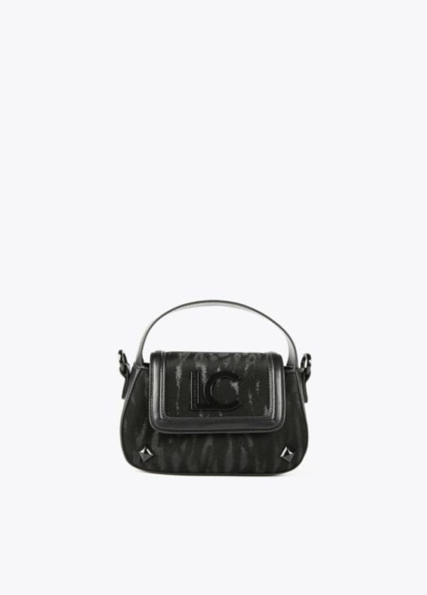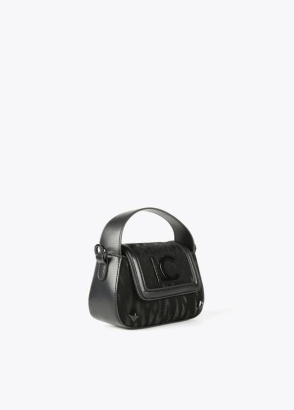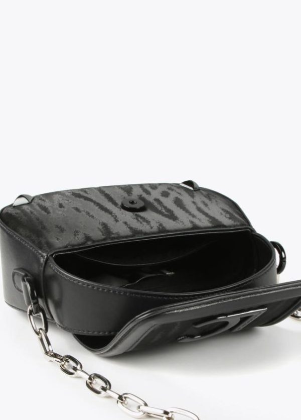 Bolso tipo bandolera con estampado zebra al tono y mega logo lacado en frontal. Asa de mano y asa bandolera y cadena extraíble.