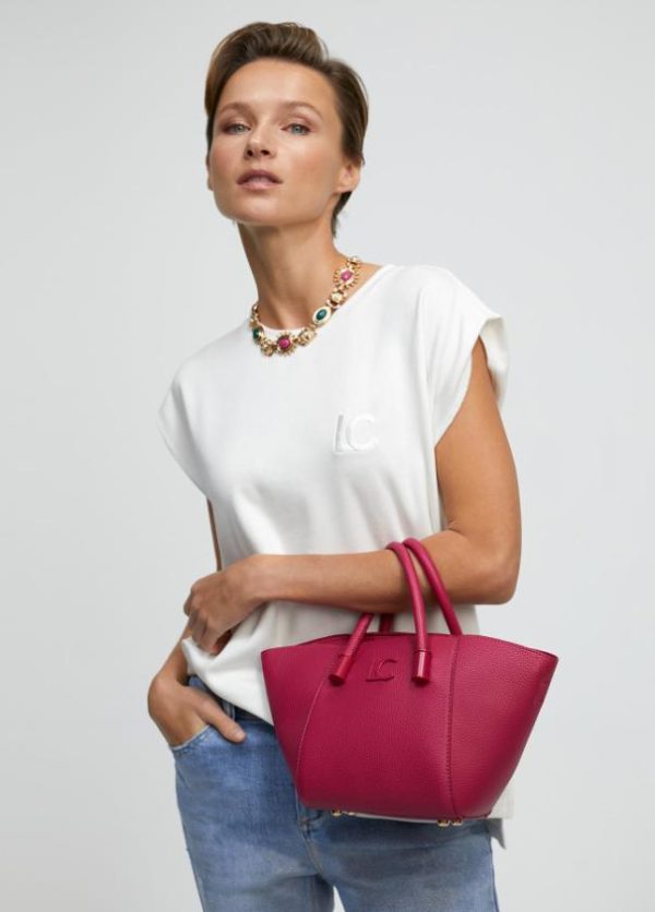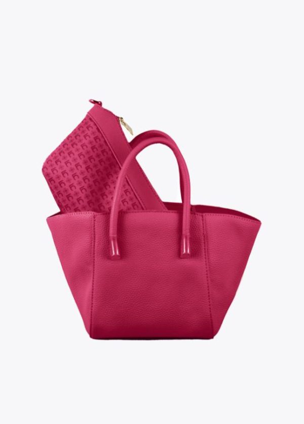 Bolso bandolera tipo mini shopper efecto piel grabada. Asas de mano y asa bandolera ajustable y extraíble. Detalle neceser interior logotipado con cremallera.