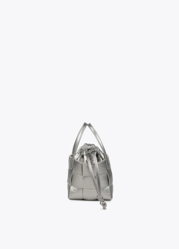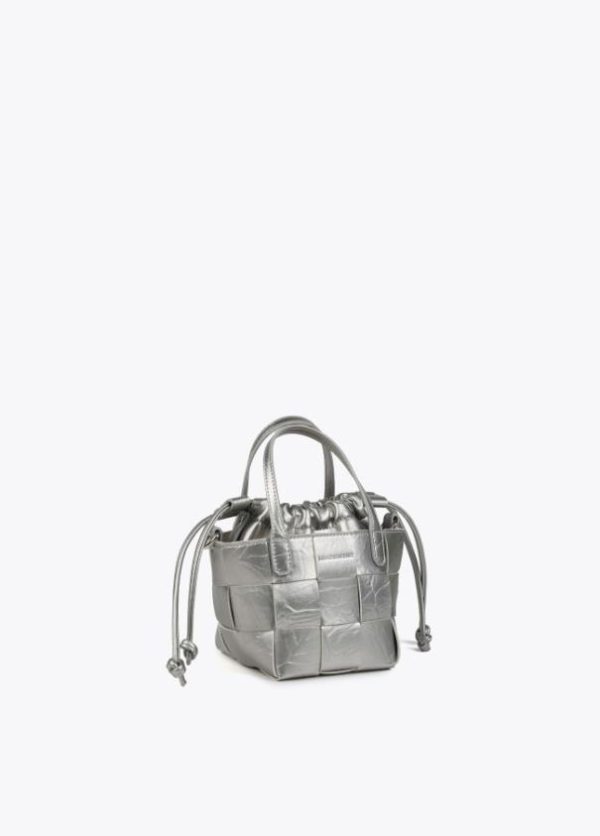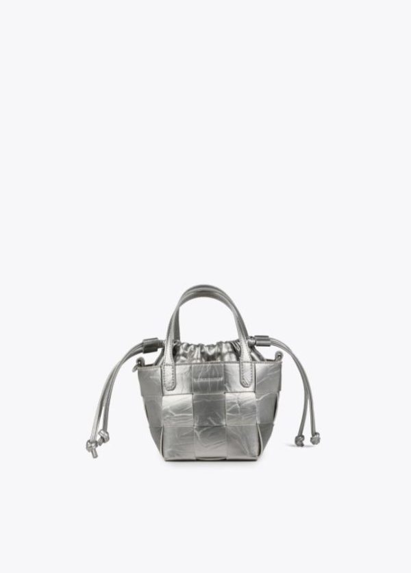 Bolsito trenzado en efecto piel con textura y saquito interior. Contiene asa bandolera y pequeño compartimento interior. Cierre con cordón ajustable.