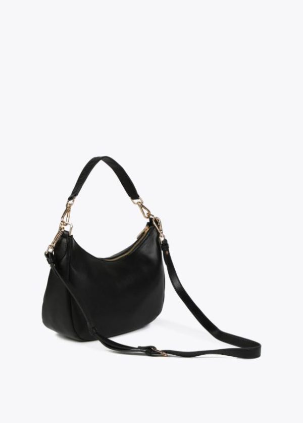 Bolso de hombro en efecto piel con ojales metálicos cuadrados. Detalle de bolsillo interior con cremallera. Contiene un asa pequeña y otra más larga. Cierre con cremallera. ALTO: 21 cm – LARGO: 28 cm – ANCHO: 10,5 cm / BANDOLERA: 55 cm