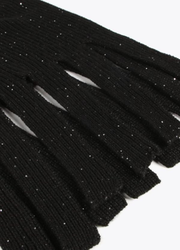 Bufanda ancha en color negro con mini lentejuelas al tono. Flecos en extremos del mismo tejido.