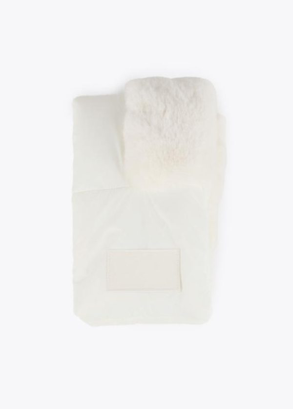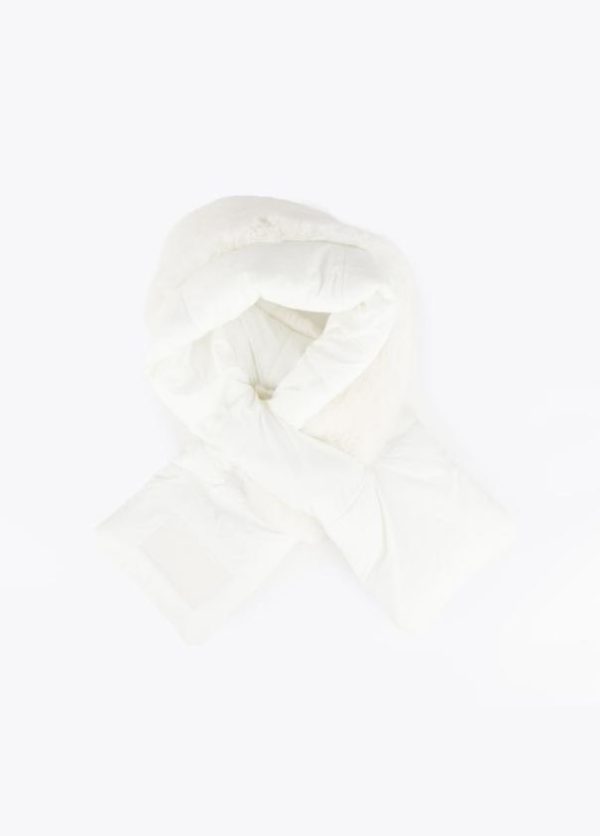 Cuello en pelo efecto piel y acolchado combinados con logo grabado al tono.