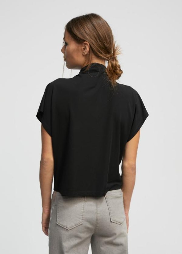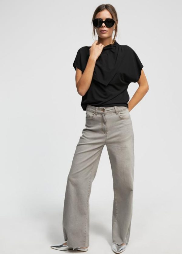 Camiseta cuello perkins. Manga caída y frontal tipo pañuelo.