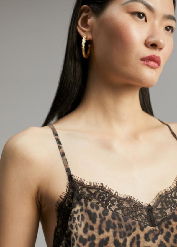 Top lencero en estampado animal print. Detalle puntilla contraste en frontal.