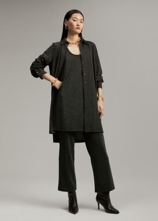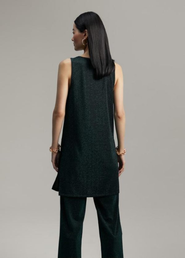 Top largo de tirante ancho. Punto lúrex. Aberturas laterales en bajo.