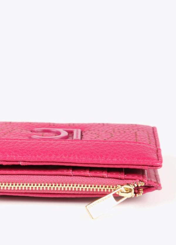 Billetero pequeño con logotipo troquelado. Cierre con cremallera en monedero y cierre con botón clic en zona tarjetero.