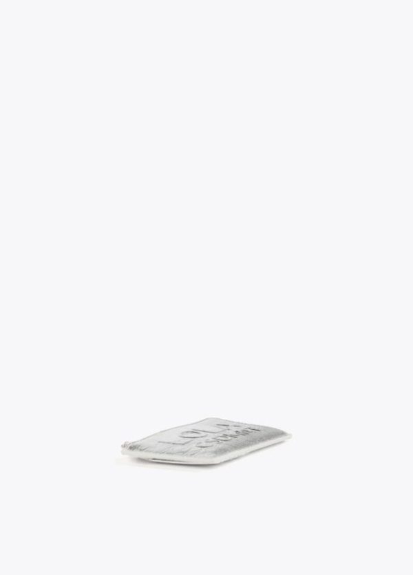 Tarjetero metalizado. Cierre con cremallera para monedas y logo grabado en parte frontal.