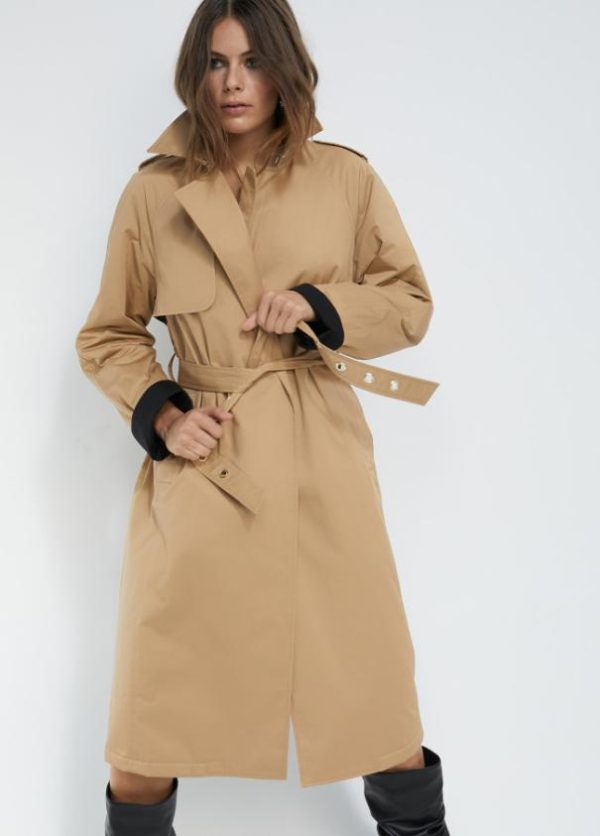 Gabardina con cinturón a tono y bolsillos laterales. Acolchado interior. Detalle de logo en canesú espalda. Banda a contraste en espalda.