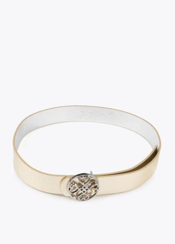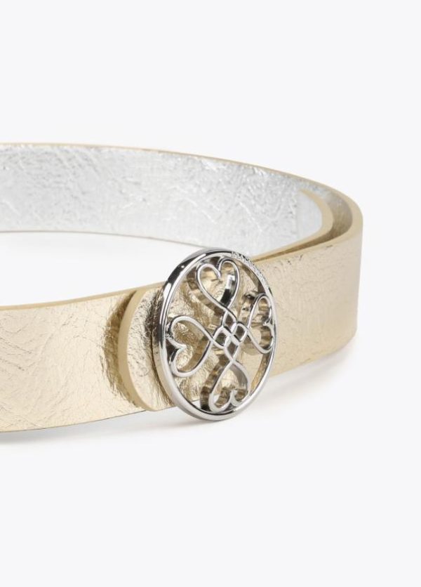 Cinturón reversible en efecto piel con hebilla dorada con corazones infinitos.