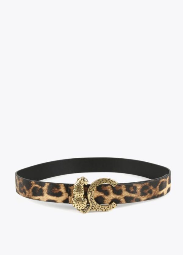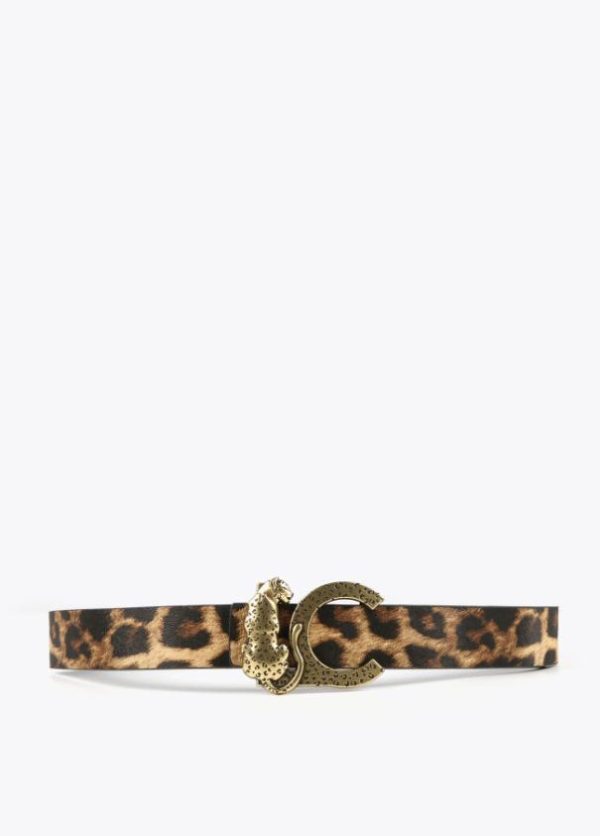 Cinturón reversible animal print y negro con hebilla logo animal dorado.