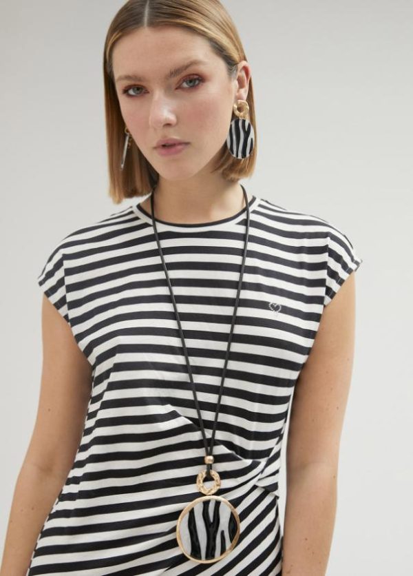 Collar con maxi colgante dorado de dos piezas combinado con efecto animal print en blanco y negro y cordón negro ajustable.