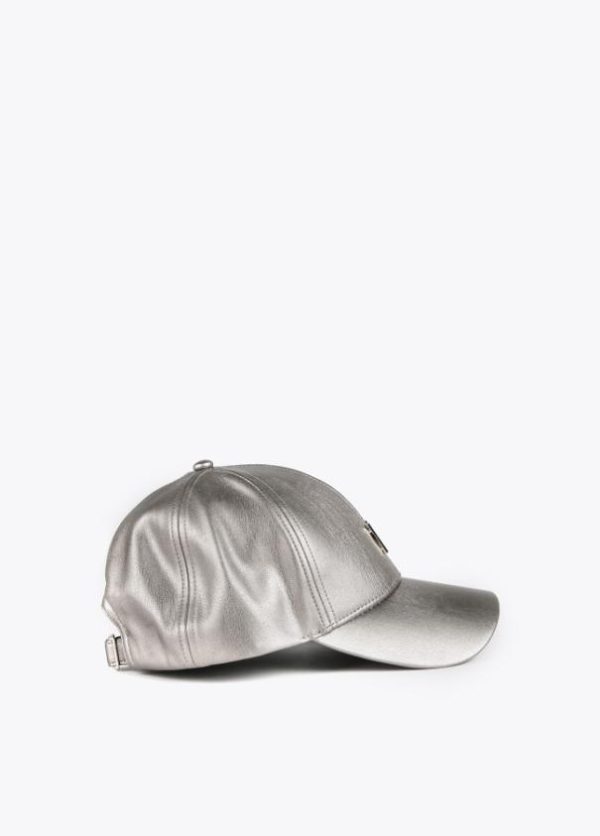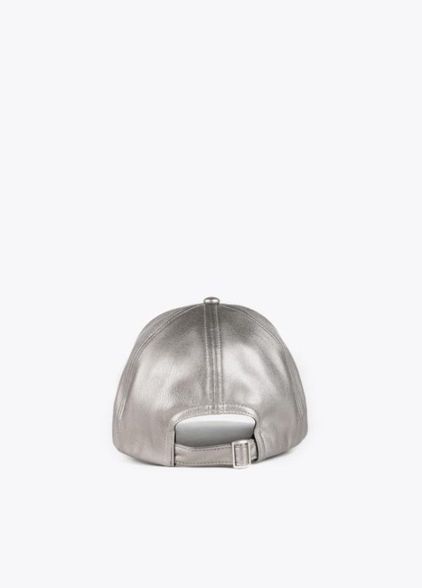 Gorra color gris metalizado con interior estampado animal. Detalle letra logo plateada en parte frontal. Ajustable.