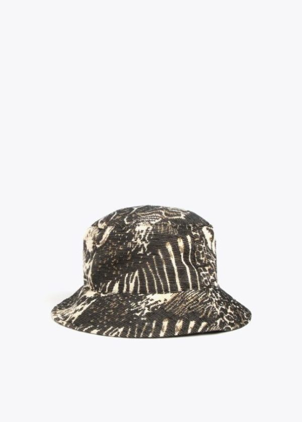 Gorro bucket de estampado animal en jacquard. Detalles de interior contrastado y logo metalizado en frontal.