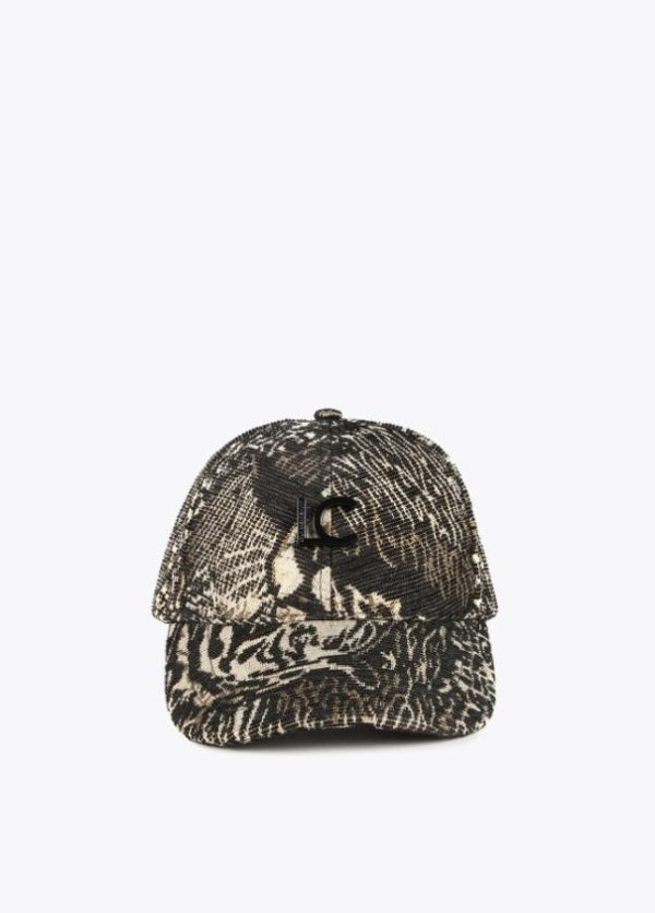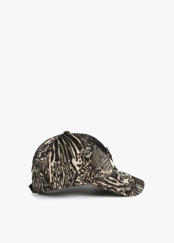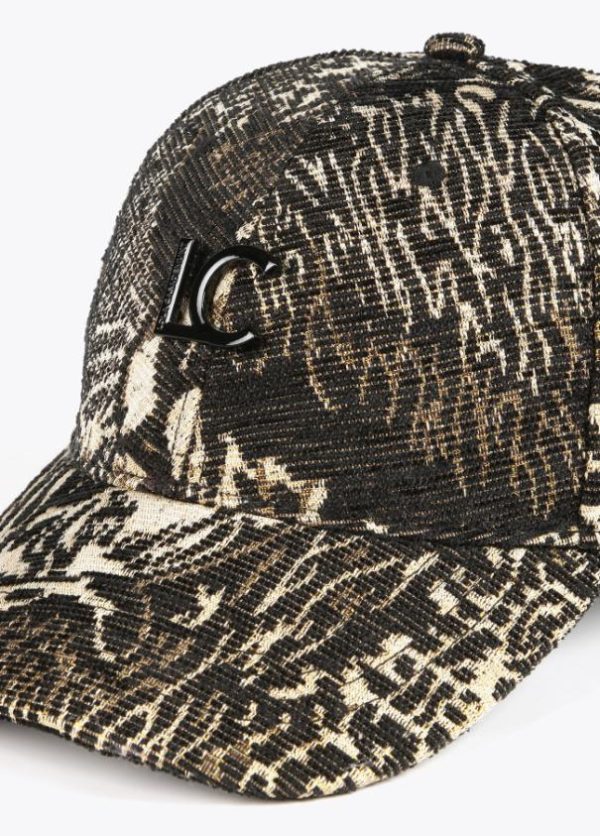 Gorra ajustable de estampado animal en jacquard. Detalles de logo metalizado en frontal.