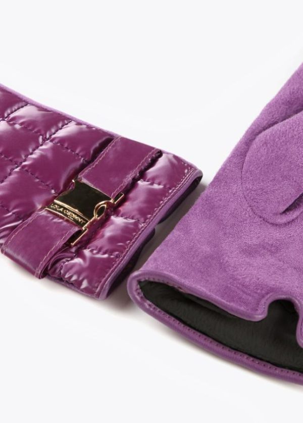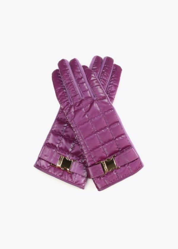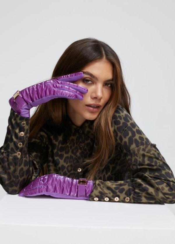 Guantes acolchados de nylon brillante y hebilla dorada y logotipada tipo sport en zona puños.