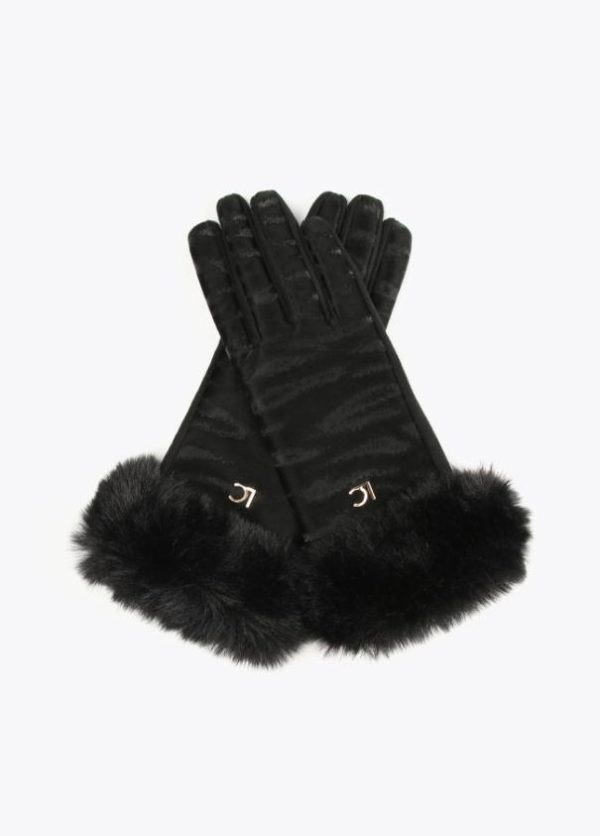 Guantes en efecto piel con animal print de zebra al tono y letras logo doradas.