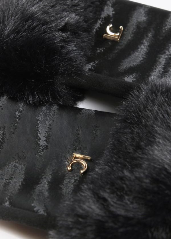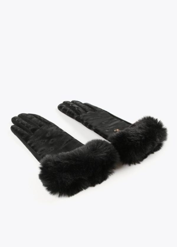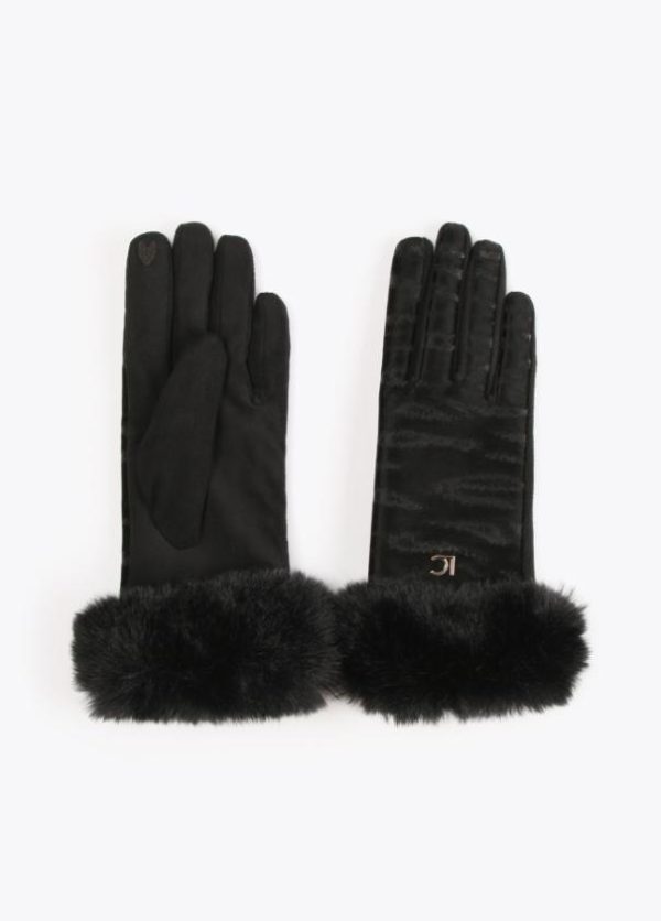 Guantes en efecto piel con animal print de zebra al tono y letras logo doradas.