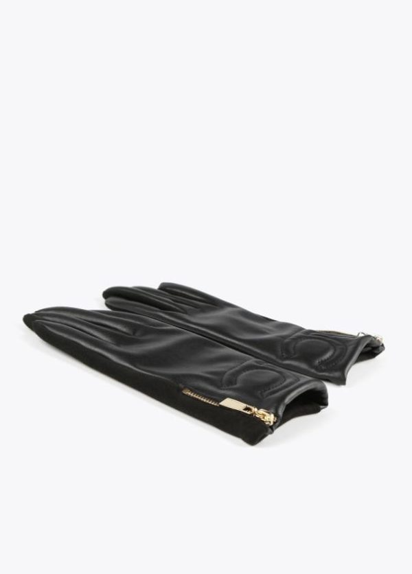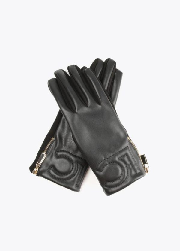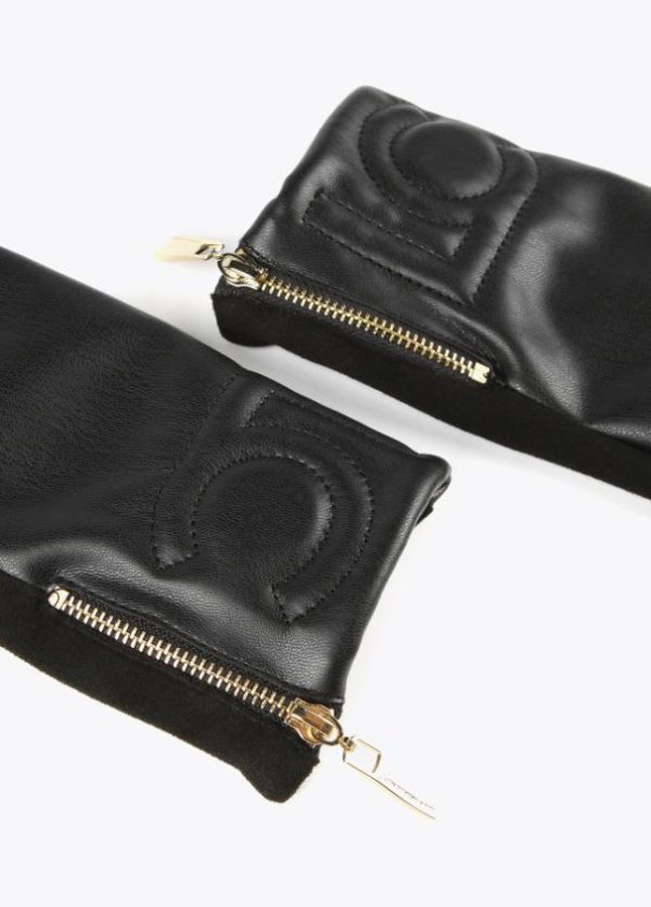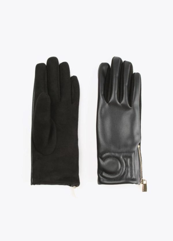 Guante en efecto piel con maxi logo pespunteado en zona puño. Detalle cremallera dorada y logotipada en lateral.