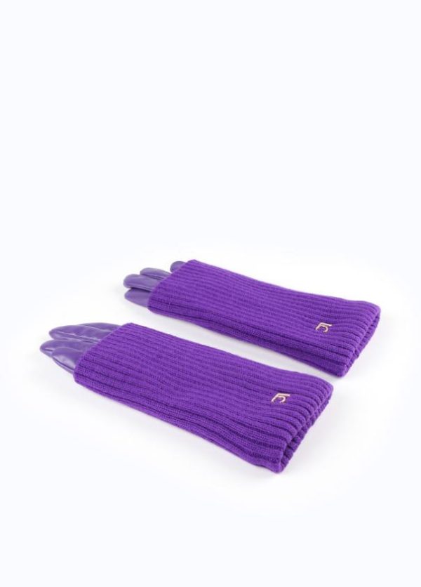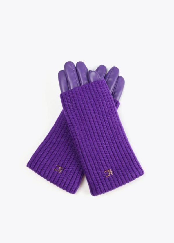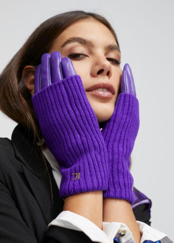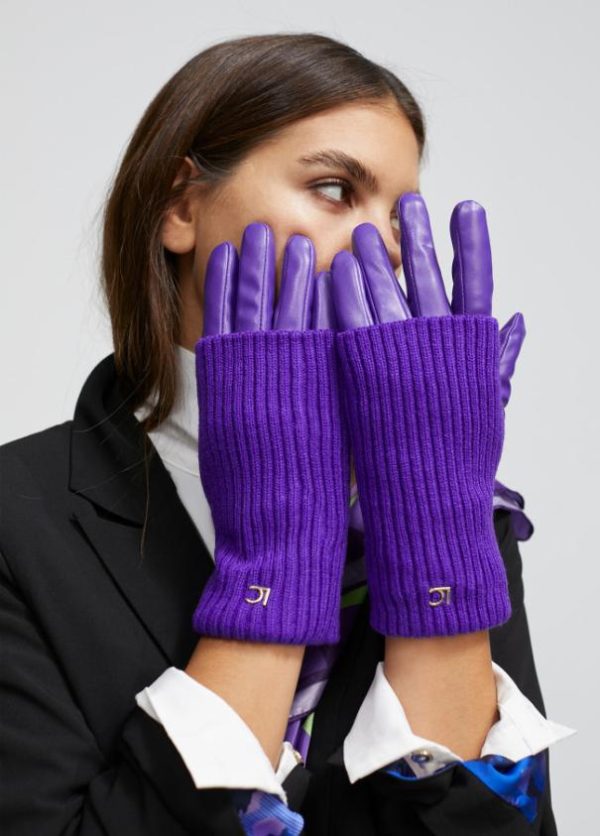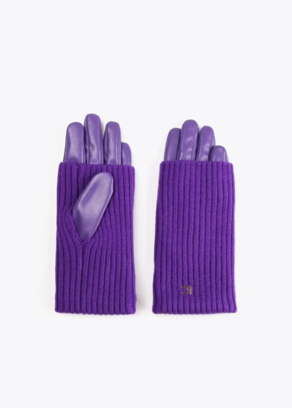 Guantes en efecto piel con puños de canalé combinados. Detalle letras logo doradas.