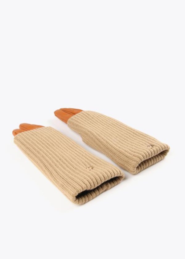 Guantes en efecto piel con puños de canalé combinados. Detalle letras logo doradas.