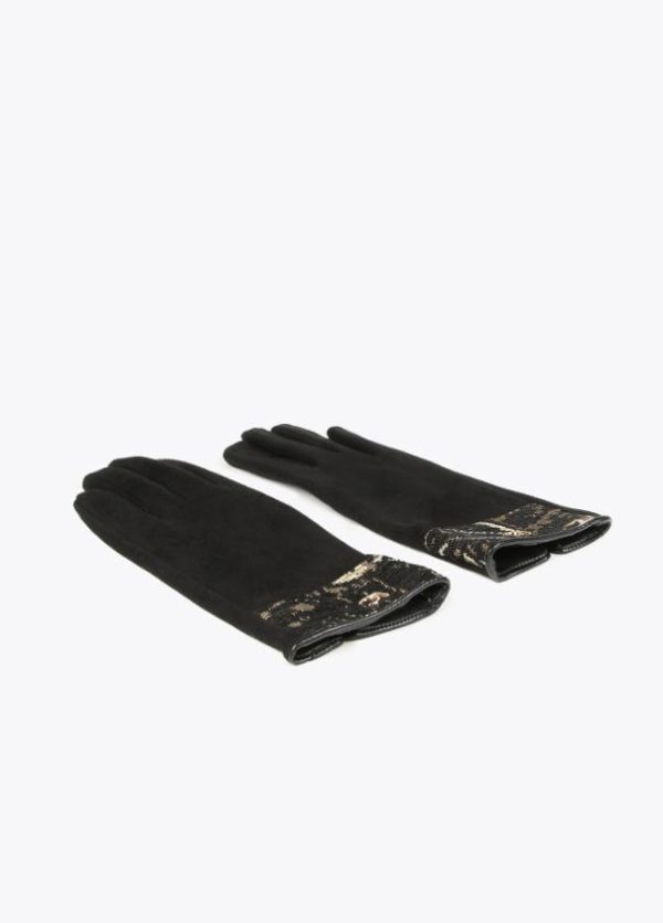 Guantes tejido jacquard y puños efecto pelo. Letra logo doradas en parte frontal.