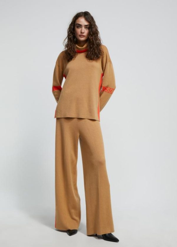 Jersey ancho de punto y de cuello alto. Detalle de color en laterales, manga y cuello.