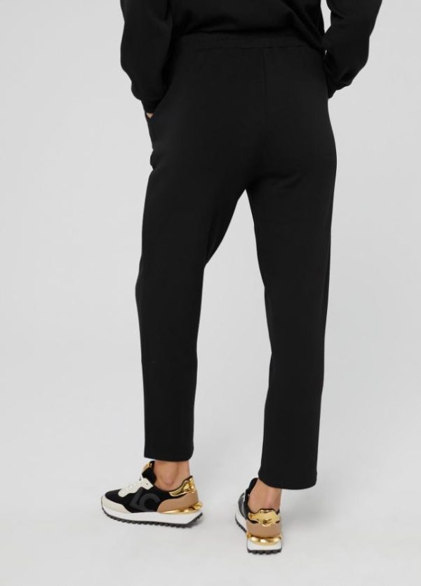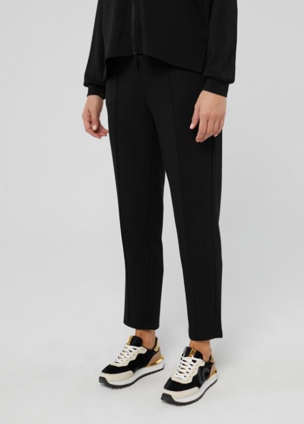 Pantalón jogger recto con bolsillos laterales en color negro y vivo al tono en el front.