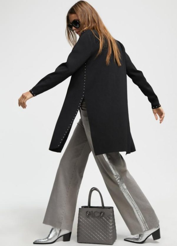Cárdigan de punto con detalles de tachas doradas en hombro, puño y frontal.