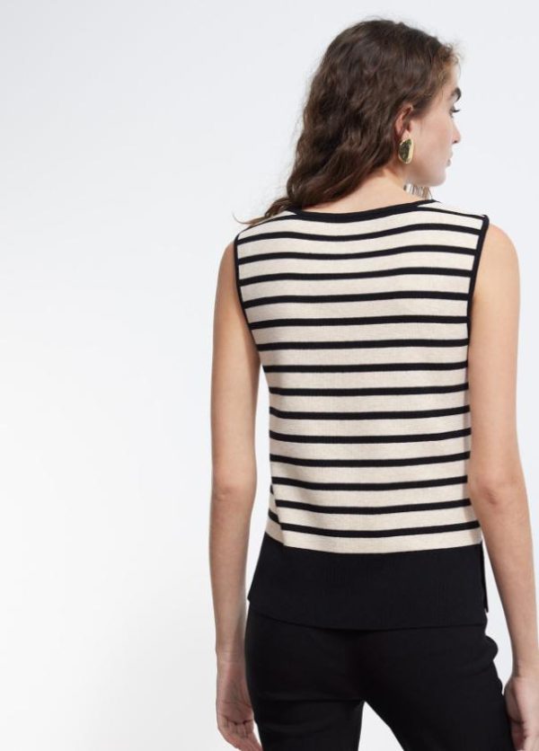 Top de punto en rayas bicolor. Cuello caja y sin mangas.
