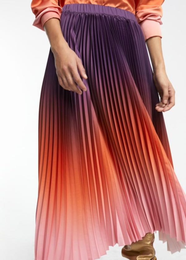 Falda plisada en color degradé. Cintura ajustable y de largo midi.