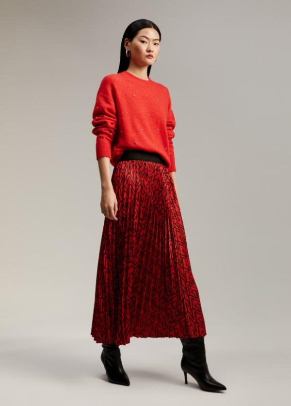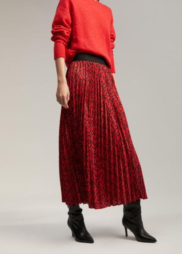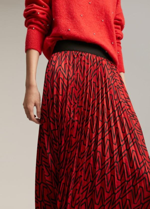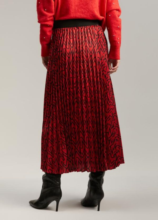 Falda de largo midi plisada. Estampado monograma M bicolor. Cintura elástica.